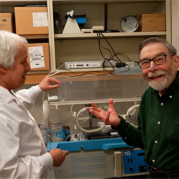 Helping Babies Breathe: Pulmonary Surfactant for Premature Infants with Respiratory Distress![]() Dr. Fred Possmayer (right) with a former trainee, Dr. Ruud Veldhuizen (left), Associate Professor, Physiology and Pharmacology, UWO. Dr. Possmayer’s research on pulmonary surfactant was continuously funded by MRC/CIHR from 1972 to 2006. As a result of his laboratory’s development of BLES, Dr. Possmayer was awarded the Order of Ontario in 2023. Fred Possmayer, PhD When I began my MRC/CIHR-supported research on pulmonary surfactant in 1972, the major cause of newborn mortality was premature babies dying of the Respiratory Distress Syndrome (RDS). This condition made breathing difficult because their lungs didn’t have sufficient surfactant—a substance that helps keep the lung’s terminal air sacs, the alveoli, open. In collaborations with Dr. Goran Enhorning, University of Toronto, a clinical formulation, Bovine Lipid Extract Surfactant (BLES), was developed for treatment. BLES administration buys premature infants sufficient time to produce their own surfactant. Today, BLES is used across Canada and in more than 20 other countries. Further investigations in my laboratory led to other insights into surfactant function. For example, we discovered two small hydrophobic proteins, SP-B and SP-C, present in natural surfactant, that are essential for surfactant function. Studying these two proteins helped us discover a number of mechanisms related to surfactant action, both in the laboratory and in the body. Thanks to treatment with clinical surfactants, such as BLES, and other improvements in paediatric care, the number of babies dying from RDS in Canada and the USA has fallen dramatically, from over 10,000 deaths per year to less than 200. Further reading