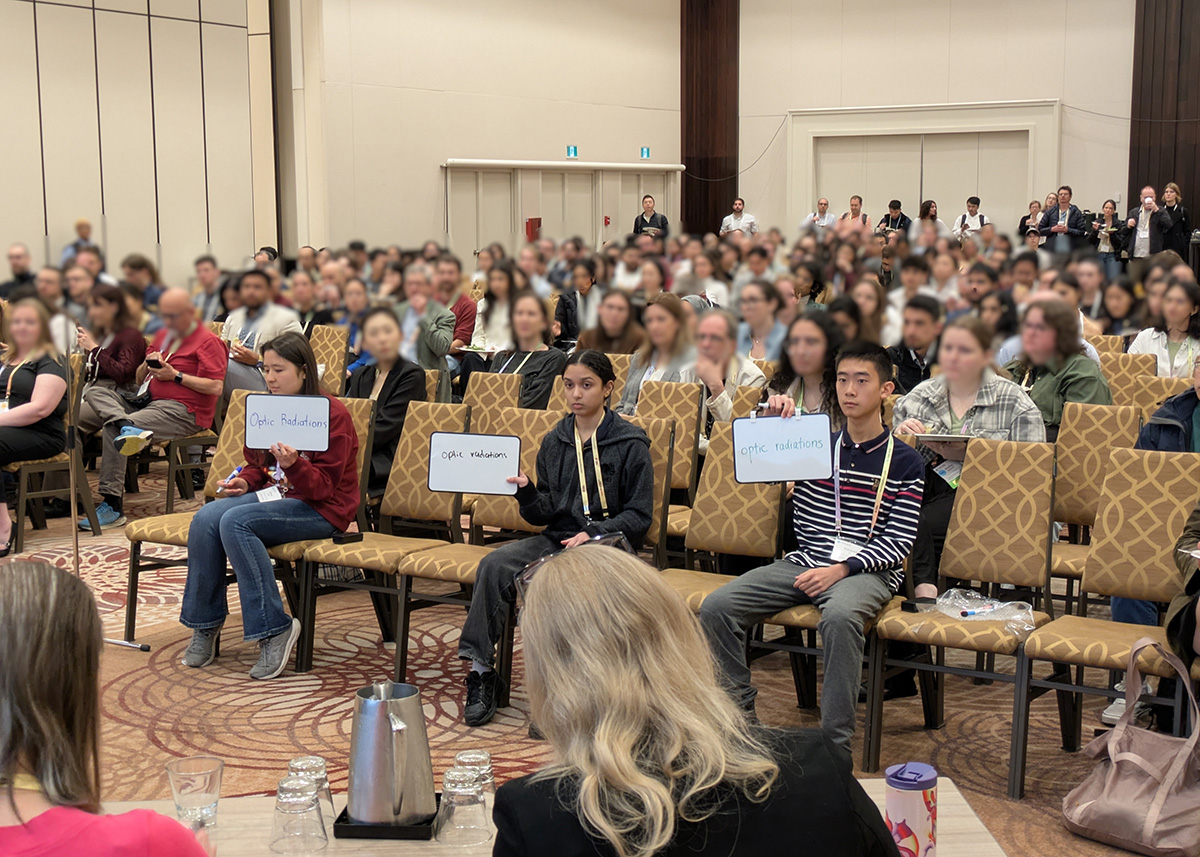 As part of the CIHR Canadian National Brain Bee "Final Showdown," she and the two other regional finalists—Maxwell Li from Toronto and Diyaa James Hamsaveni from Guelph—wrote a neuroanatomy test and then answered questions about neuroscience in front of a live audience. Only Emma knew that the entorhinal cortex is the part of the brain that first sends signals to kick-start the process of forming memories. That knowledge helped her win the title and earned her the honour to represent Canada at the 2025 International Brain Bee World Championship taking place in November, competing against students from more than 40 countries.