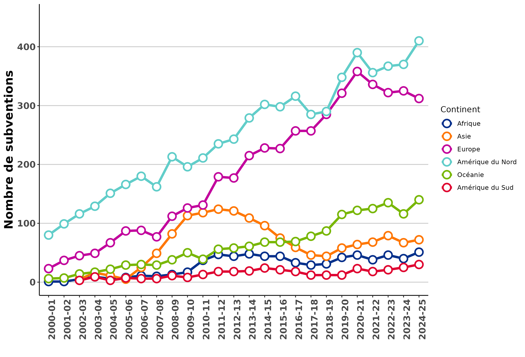 Amérique du Nord 80 99 116 129 151 166 180 162 213 196 211 235 243 279 302 298 316 285 290 348 390 356 367 370 410