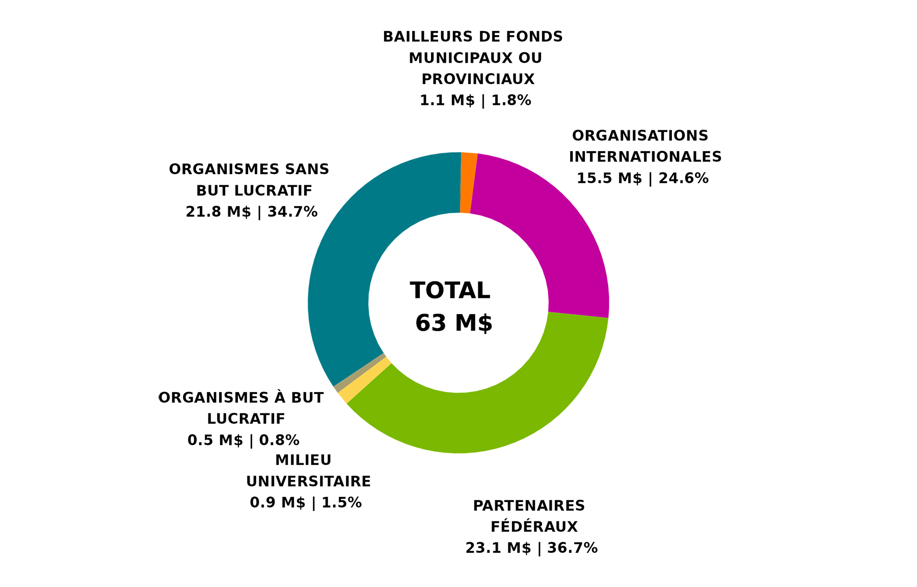 Bailleurs de fonds municipaux ou provinciaux 23 $ 11 %